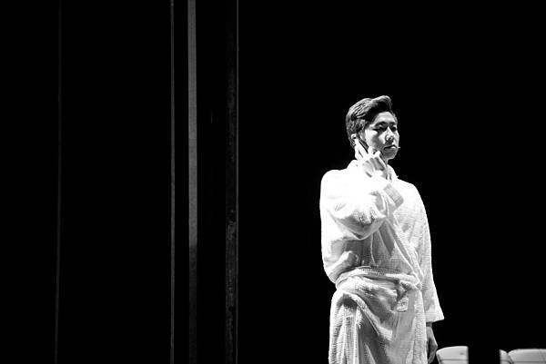 再來還有演員細膩的臉部表情及細節性的小動作。這次由於座位比較前面的關係,我能夠非常清楚的看到演員臉部表情的變化,他們利用一些表情的變化,留下了劇情的伏筆及暗藏的情緒。湯敬澤在介紹他和若唯的愛情時,說到他們的婚禮,他說:「這對我們來說都非常重要。」就在此時,他的嘴角露出了一抹神秘而尷尬的微笑,而非喜悅,再加上後面一個心虛的表情,為後面他其實是同性戀者埋下伏筆。而細節性的小動作,從三位女主角身上最為明顯。當簡嫚菁看見Charles和若唯重聚時的眼神,她故作鎮定而手卻透露出不安的情緒,那是女人的貼心;當雷奕梵打開摩鐵房門看見慌張無助地敬澤,她心中激起的感傷比誰都強烈,但她卻一手緊握拳頭忍住淚水,一手拍拍敬澤保證會保護她,這是女人的堅韌;當白若唯看見Charles的信,激動地大哭詢問事情經過時,他無助而不安的眼神,這是女人的脆弱。演員們用這些細微的表情及動作,點點勾起觀眾的每一條深情,也絲絲扣著我們的情緒。