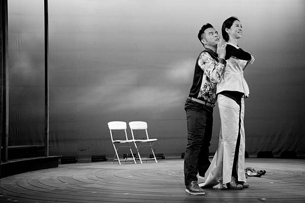 燈暗,如咖啡廳般安靜閒適的音樂緩緩入場;燈亮,一群拖著行李箱的旅人們,將箱子打開,坐上,成為了飛機座艙。這是整部戲的第一個創意,而我必須說,它確確實實的吸引到我了。緊接著,一個純正到地英國腔英語,用輕快的節奏,演繹我們都很熟悉的BBC式節目,對於非常熱愛英國風格的我來說,這無疑又是一個亮點。而這似乎也是蔡柏璋導演每齣戲都會出現的共同元素——因為他是英國留學生。故事的起始點,從三位都會女性出發,他們沒有過多的華服裝飾,反而每一位都像是我們身邊的誰誰誰,激起心中陣陣漣漪共鳴。