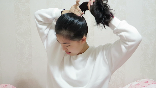 步驟二:從中間開始將頭髮往後梳成一個高馬尾