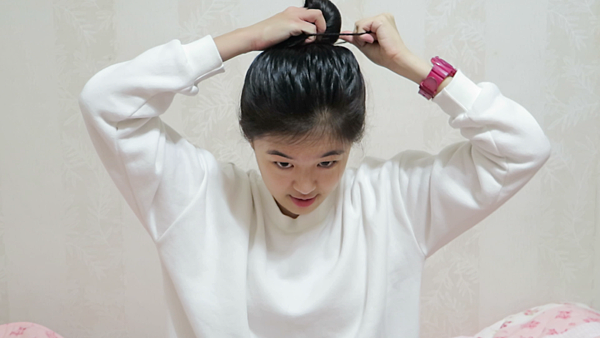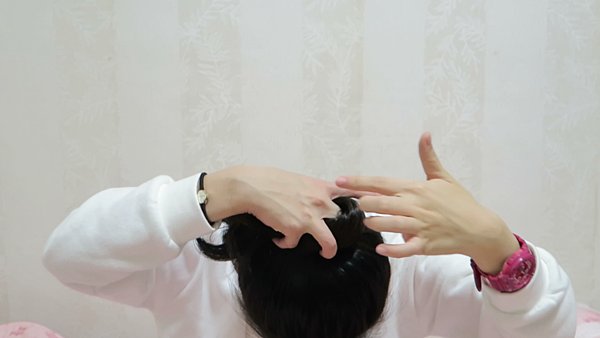 (頭髮更長的可以多繞幾圈,以第一圈為基礎,其他往中間空隙纏繞)