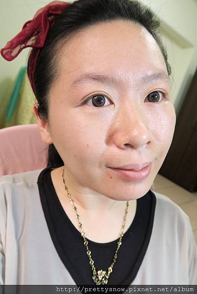 全臉都上妝囉,看起來很服貼,而且碗桂只擦一層就有這樣的遮瑕度,