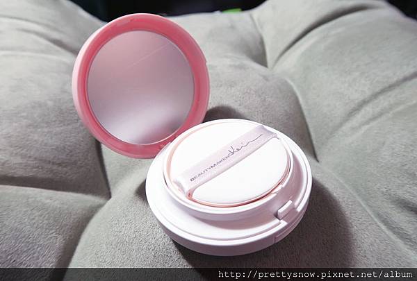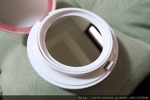 跟一般氣墊粉餅最大不同就是那塊有洞孔的金屬版,哇,第一次看到!