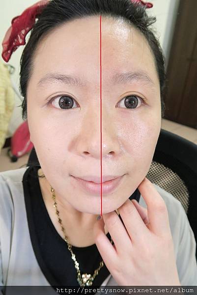 碗桂先上半邊臉,很明顯就看出哪邊有用 零油光晶漾持妝氣墊粉餅