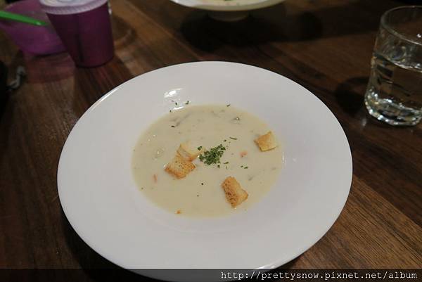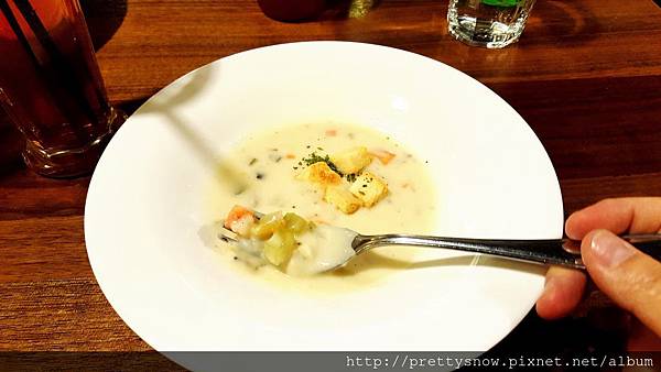 首先上的是主廚私房湯-蘑菇玉米濃湯