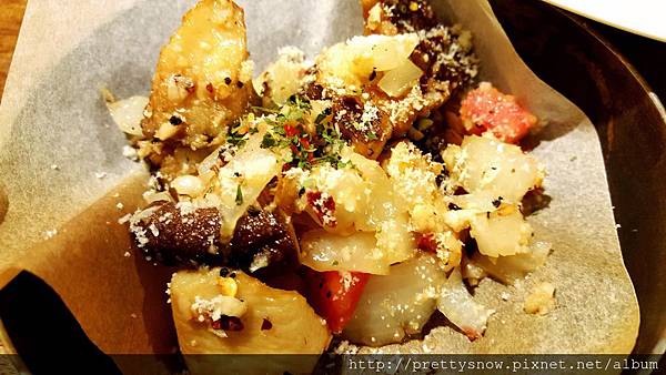 好阿,讚阿,菇類我喜歡,而且將菇菇們炒得既香又滑嫩,隱約有白酒的味道,