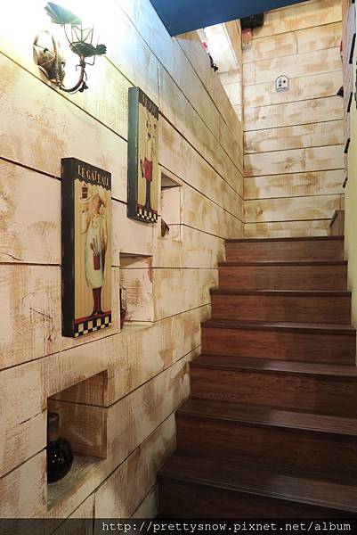 胖肚子小餐館還有二樓,樓梯也是木質的,旁邊的擺設更是讓人忍不住會心一笑^^