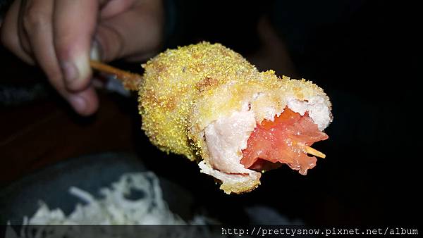 也是店員推薦,所以叫了兩串,番茄豬肉丸的豬肉好綿密多汁,加上番茄酸甜的點綴讓味道有更多層次,