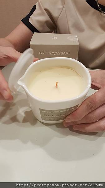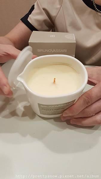 接待人員很理所當然的說對,還說明精油蠟燭是來自西班牙的Brunovassari品牌,是純天然植物萃取的精油蠟燭。