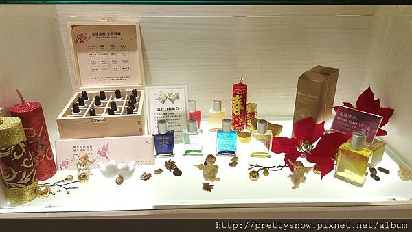 櫃子裡有許多佳利安美生館販賣的精油、花精、面膜等。因為碗桂以前有接觸過花精,所以在這邊稍為逗留了一下。
