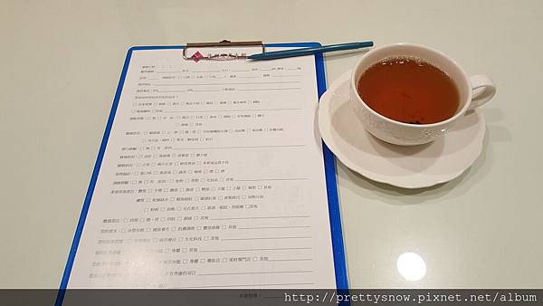 接著親切的接待人員帶領我填寫資料,並且有一杯熱茶,從捷運站走過來真有點渴呢~