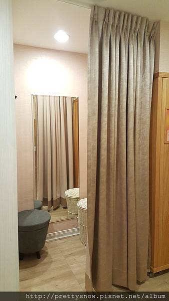 洗完以後就到更衣室裡將浴巾圍上去,也是走乾淨明亮風格。