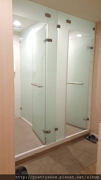 沖洗室有兩間,都很明亮乾淨而且水柱很強,裡面有洗髮精、沐浴乳,碗桂洗得不亦樂乎(?)