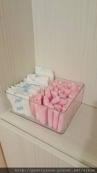 不想洗頭也有提供浴帽,旁邊粉紅色是紙內褲,還是有點丁字型的耶