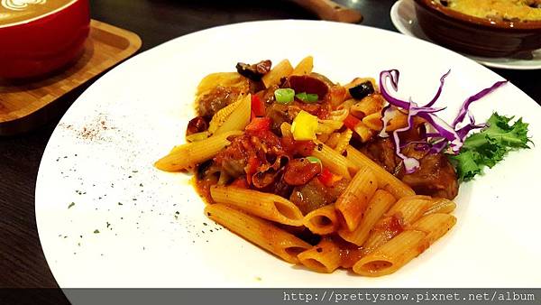 但這到義大利麵骰子牛肉給的不少,而且吃起來入味又多汁,骰子牛感覺有先入味過,表現出乎我的期待喔。